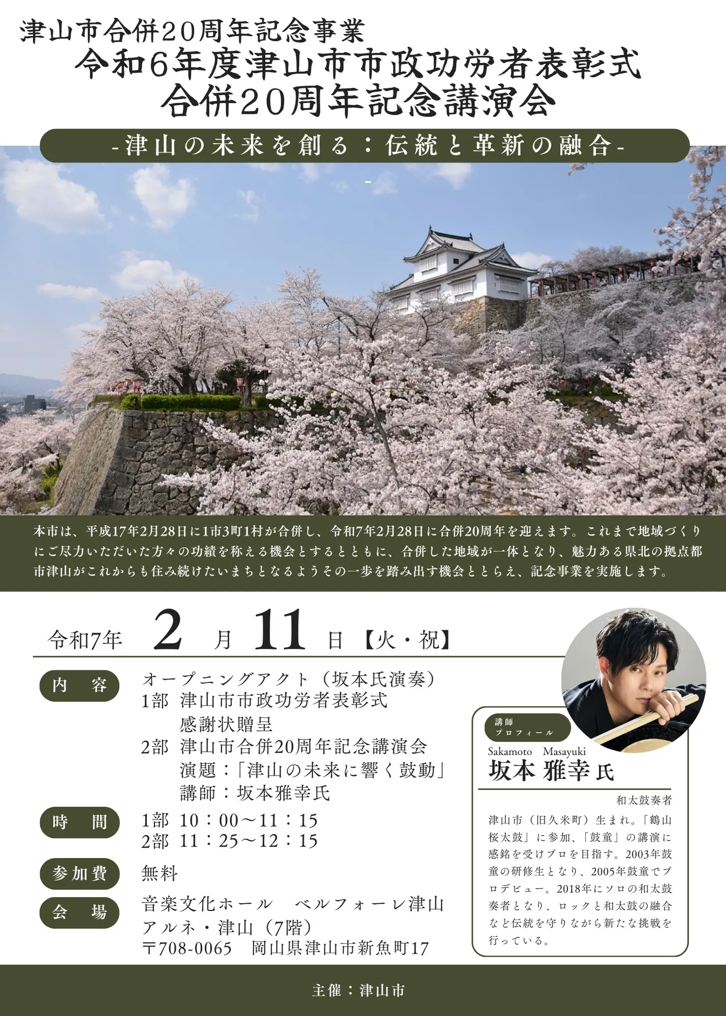 【日程】令和7年2月11日(火曜日・祝日)【時間】午前10時から午後0時15分・1部:令和6年度津山...