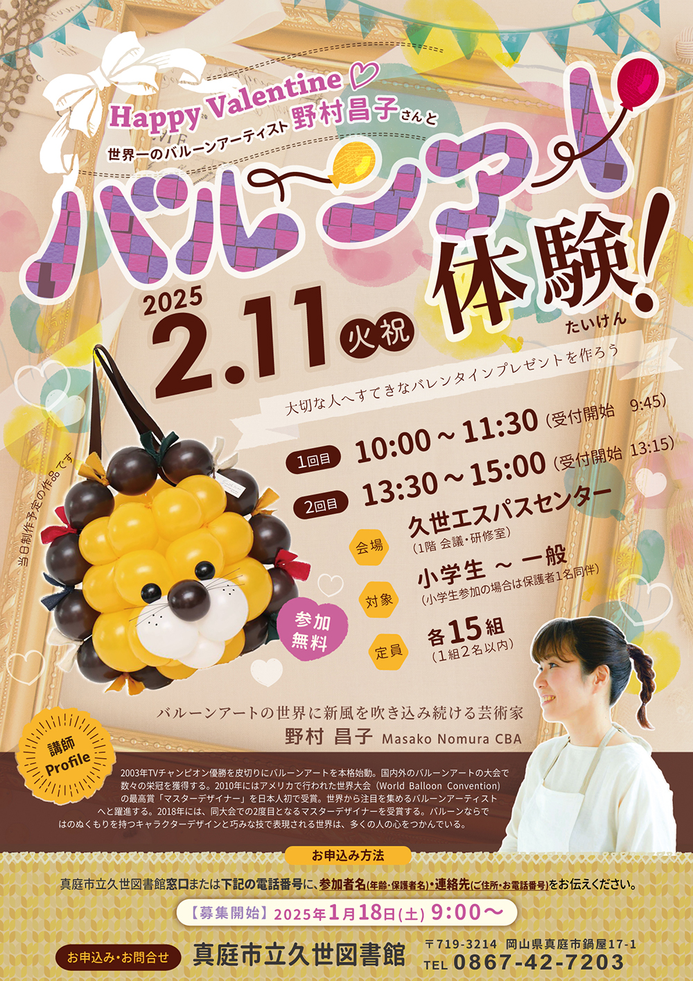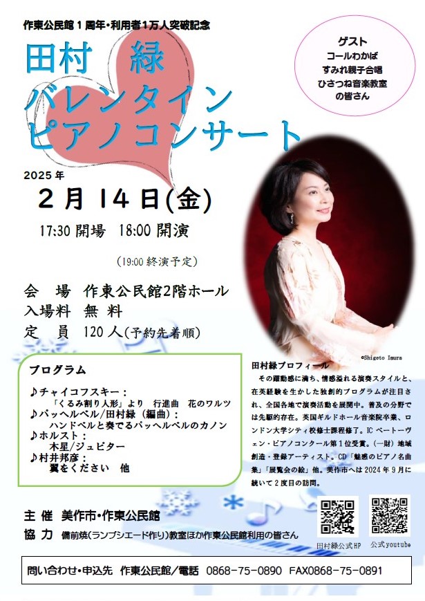 【日程】令和7年2月9日(日曜日)【時間】午後3時30分~5時 ※開場:午後3時【会場】真庭市立中央...