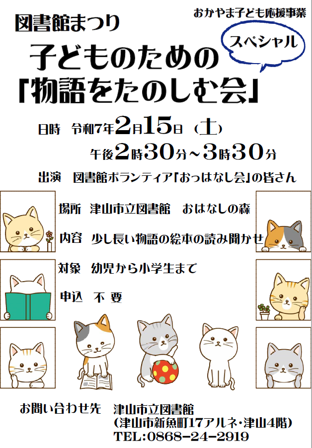 【日程】令和7年2月15日(土曜日)【時間】午後2時30分~3時30分【会場】津山市立図書館(津山市...