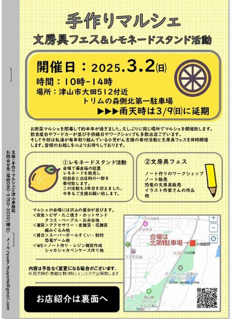 【日程】2025年3月2日㈰※雨天延期 3月9日㈰※延期となった場合は規模が縮小しますが、レモネード...