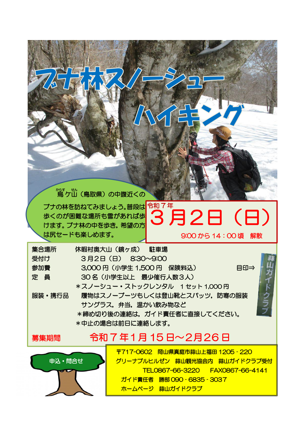 【日程】令和7年3月2日(日)【時間】(受付)8:30~9:00 9:00~14:00頃解散【集合場...