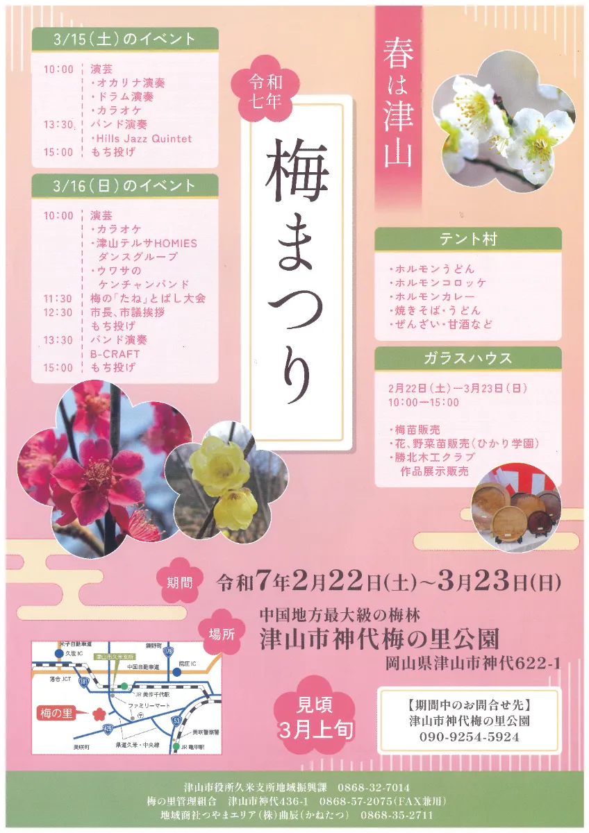 【日程】2025年2月22日(土)~3月23日(日)【会場】津山市神代梅の里公園(津山市神代622-...