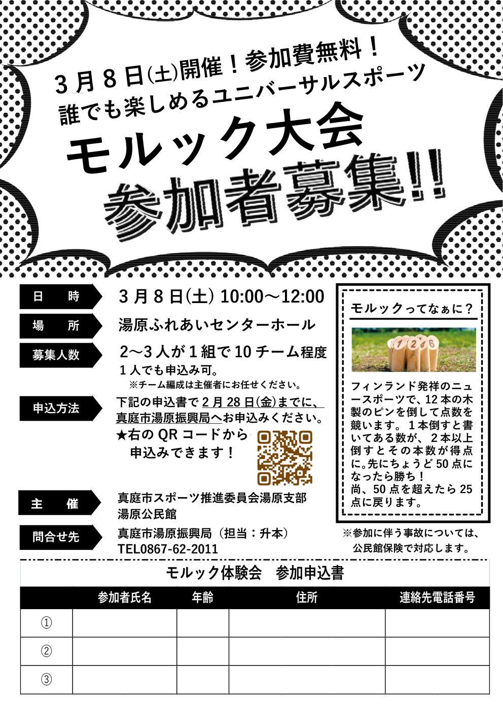 【日程】令和7年3月8日(土曜日)【時間】10時00分~12時00分【会場】湯原ふれあいセンター(真...