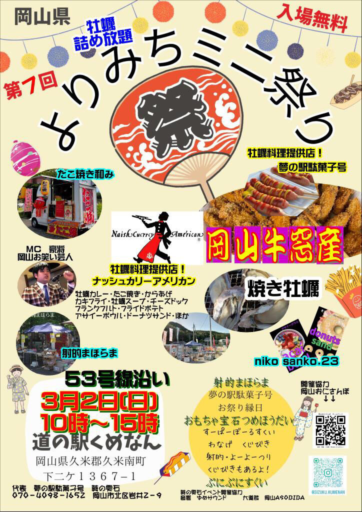 【日程】2025年3月2日【時間】10:00~15:00【会場】道の駅くめなん(久米郡久米南町下二ケ...