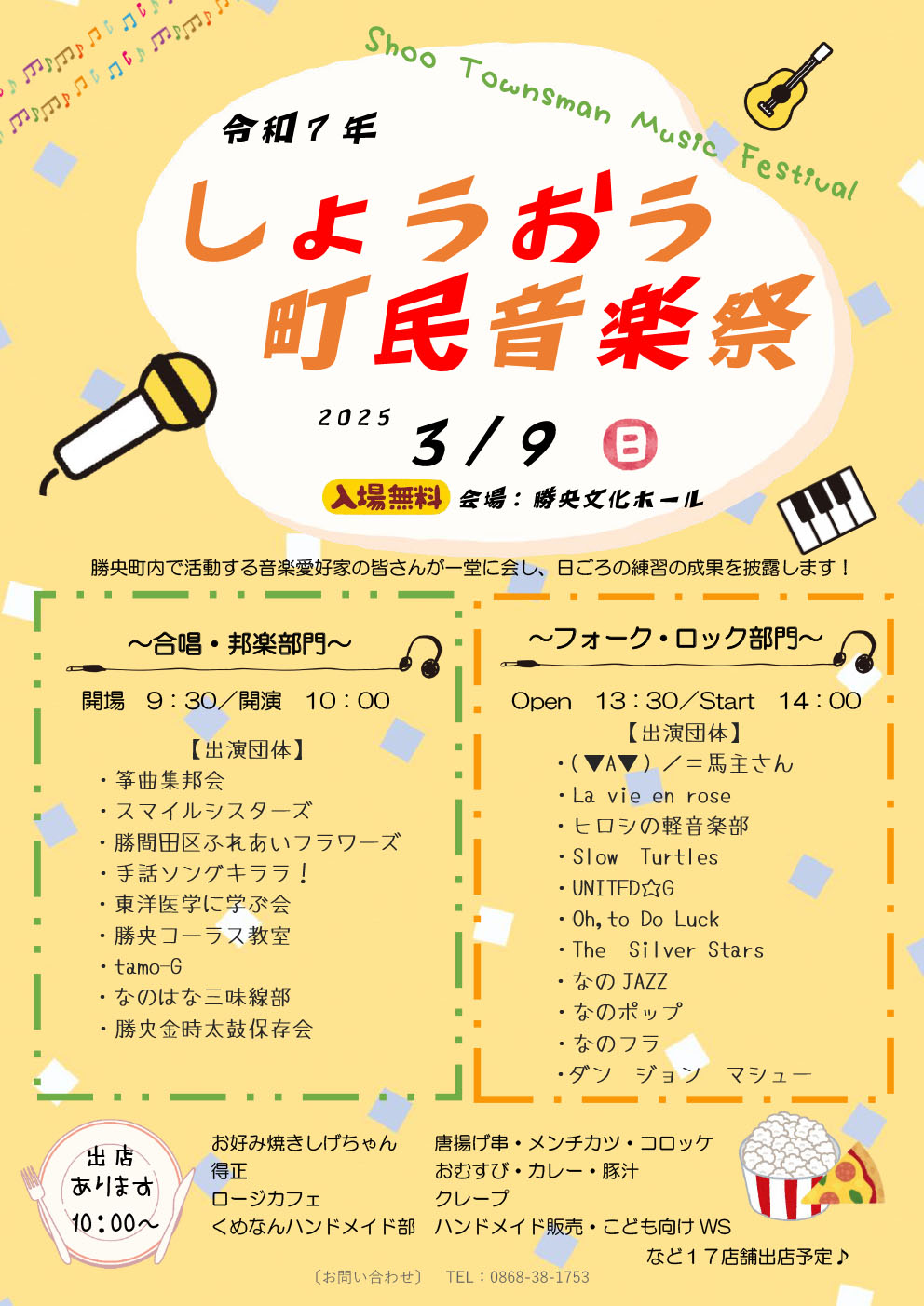 【日程】2025年3月9日(日)【時間】合唱・邦楽部門 9:30開場 10:00開演フォーク・ロック...