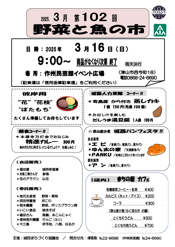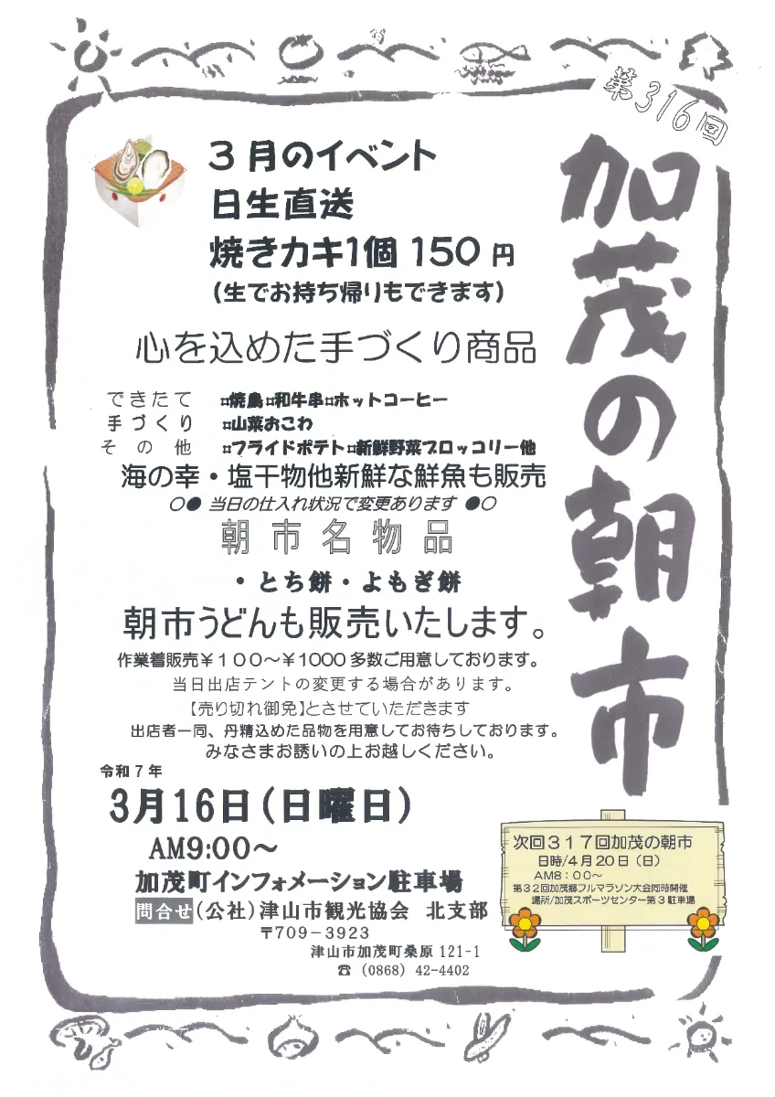 【日程】2025年3月16日(日)【時間】9:00~【会場】加茂町インフォメーション駐車場(津山市加...