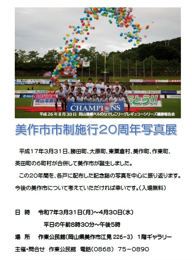 美作地域(津山市、真庭市、美作市、勝央町、鏡野町、奈義町、美咲町、久米南町、西粟倉村、新庄村)で行われるイベントを紹介しています。