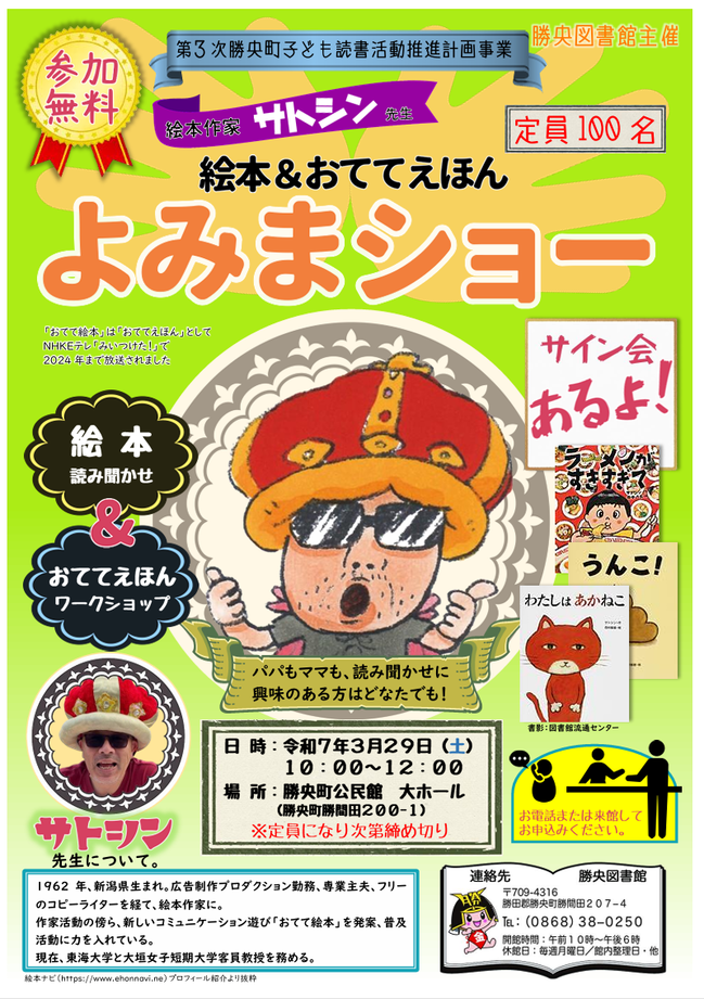 【日程】令和7年3月29日(土)【時間】10:00~12:00【会場】勝央町公民館 大ホール(勝央町...