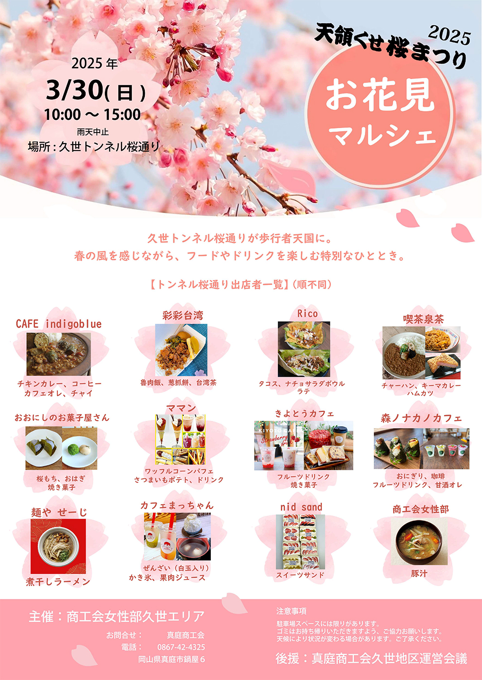 【日程】2025年3月30日(日)※雨天中止【時間】10:00~15:00【会場】久世トンネル桜通り...