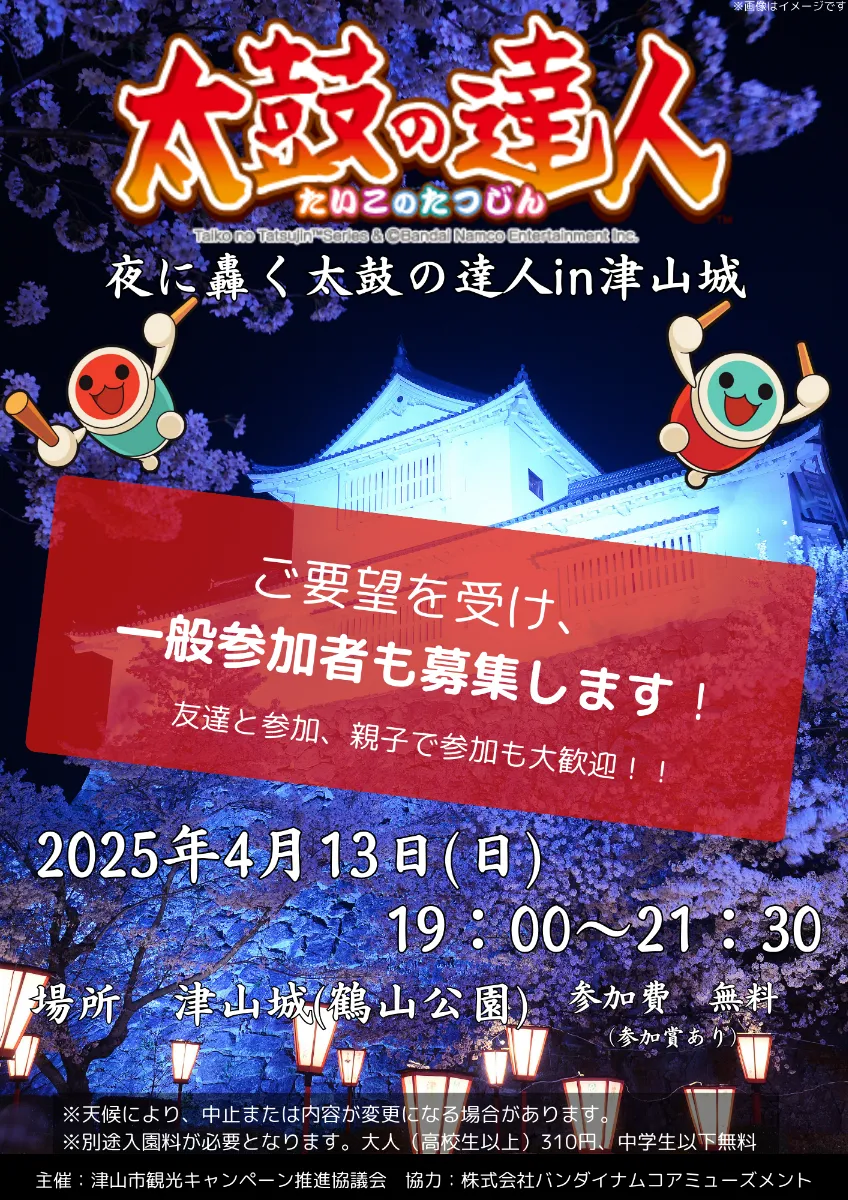 【日程】2025年4月13日(日)【時間】18:30~21:30【会場】津山城(鶴山公園)本丸(津山...