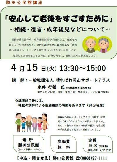 【日程】令和7年4月15日(火曜日)【時間】午後1時30分【会場】勝田公民館(かつた市民センター)(...
