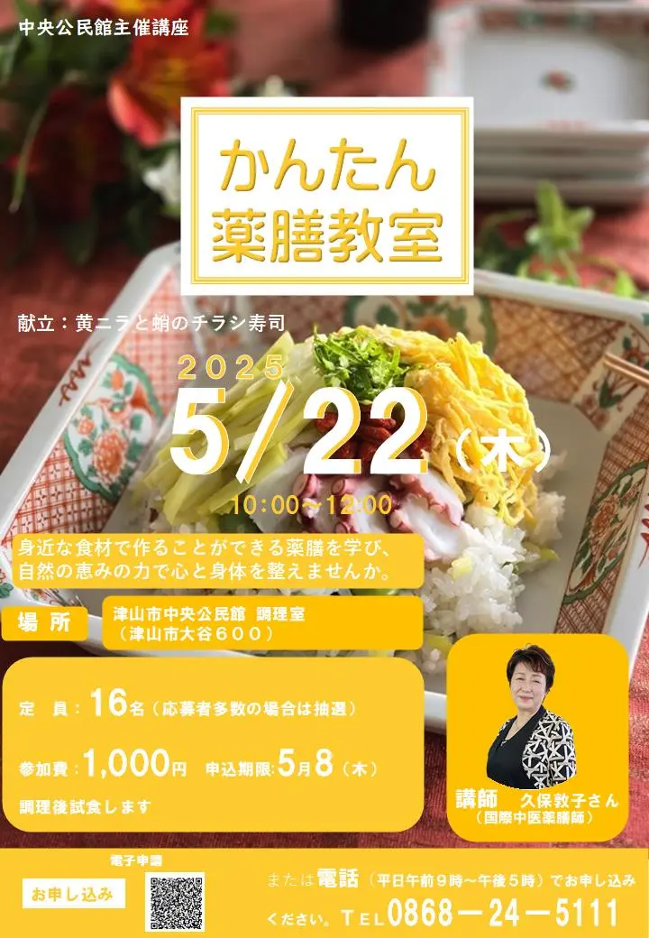 【日程】令和7年5月22日(木)【時間】午前10時~正午【会場】津山中央公民館(津山市大谷600)【...