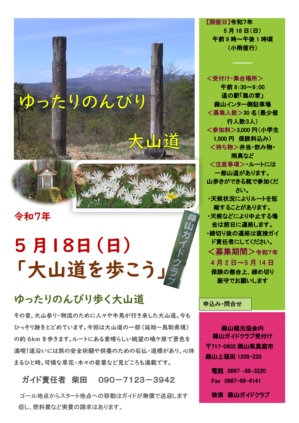 【日程】令和7年5月18日(日) ※小雨決行【時間】(受付)08:30~09:00(出発)09:00...