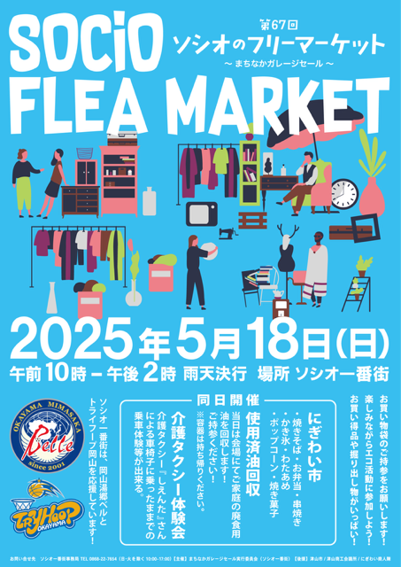【日程】2025年5月18日(日)【時間】午前10時~午後2時【会場】ソシオ一番街通路一帯(津山市京...
