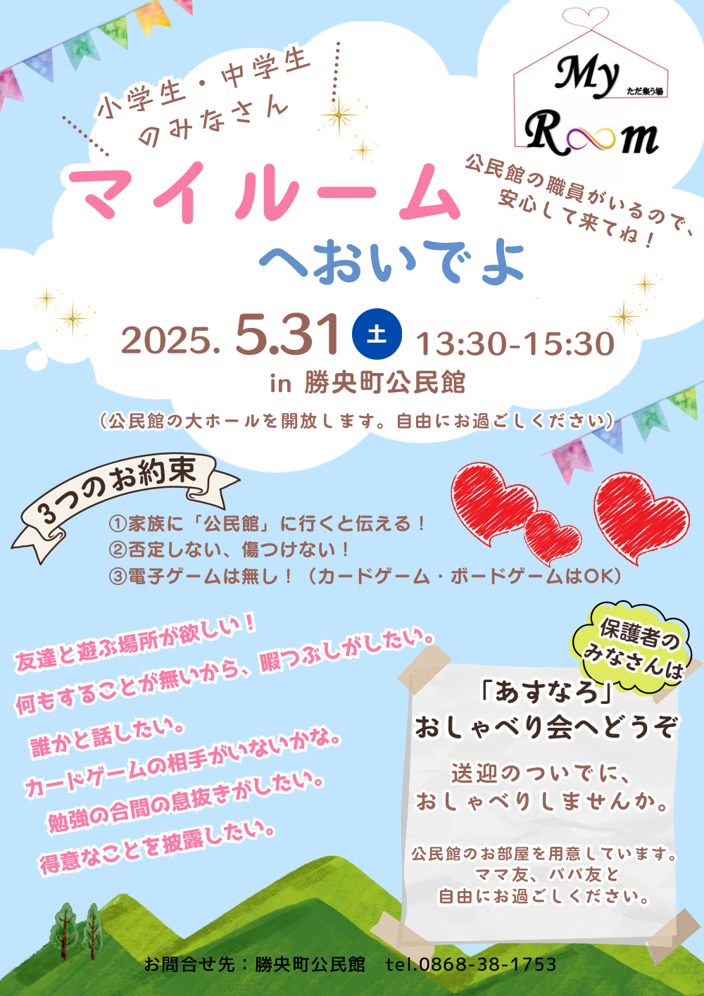 【日程】2025年5月31日(⼟)【時間】 13:30~15:30【会場】勝央町公⺠館(勝田郡勝央町...