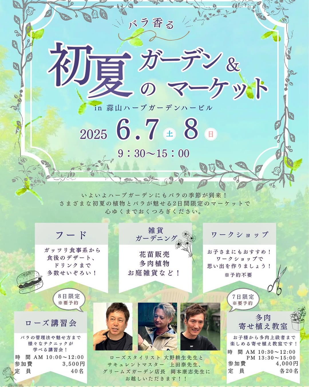 【日程】2025年6月7日(土) 6月8日(日)【時間】9:30〜15:00【会場】蒜山ハーブガーデ...