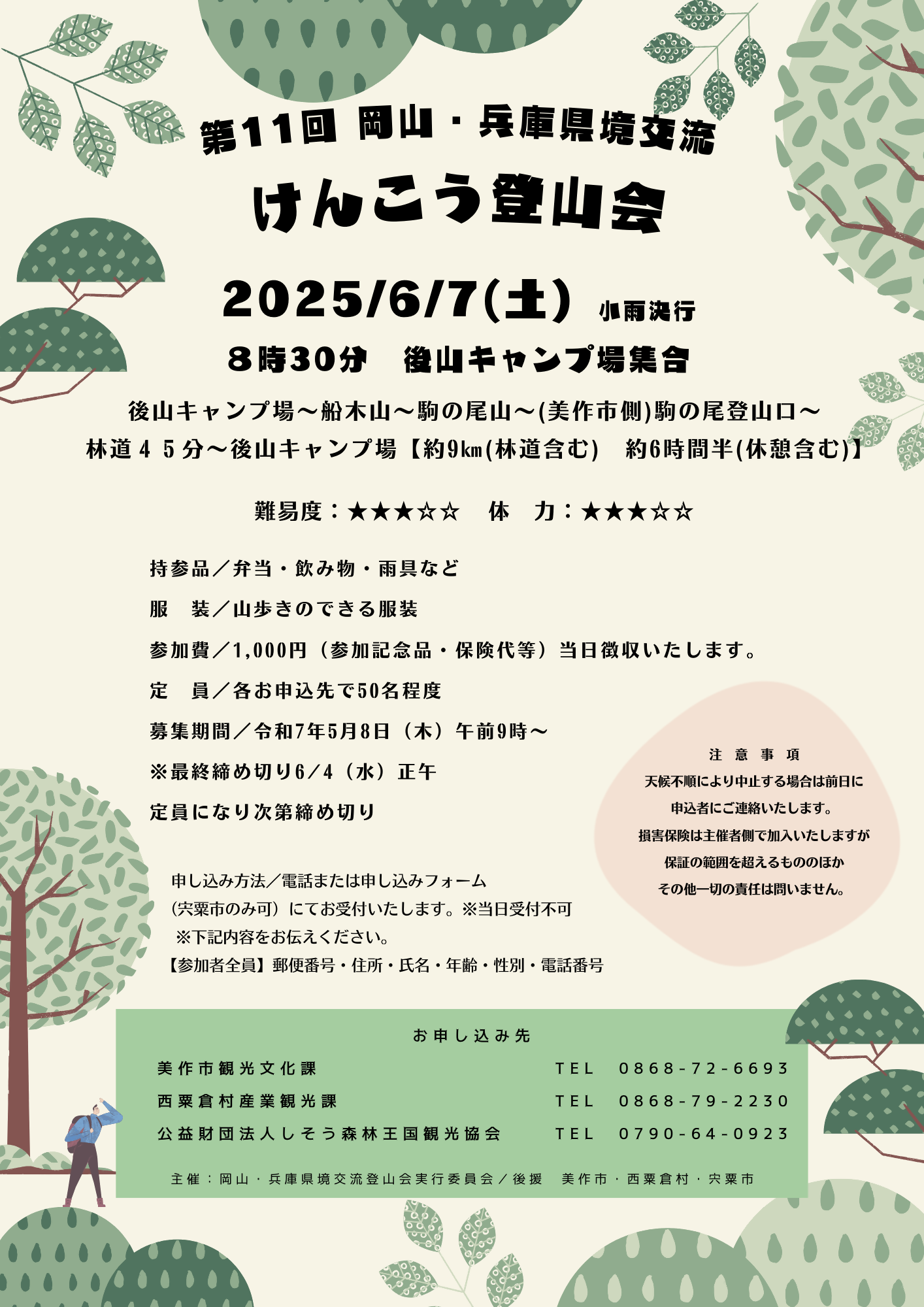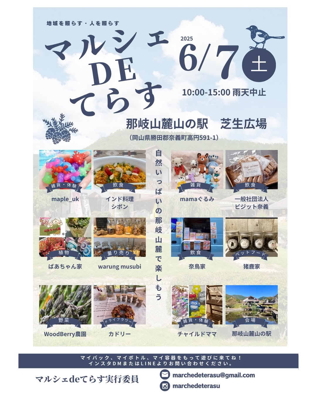 【日程】2025年6月 7日 (土)【時間】10:00~15:00【会場】那岐山麓山の駅 コテージ前...