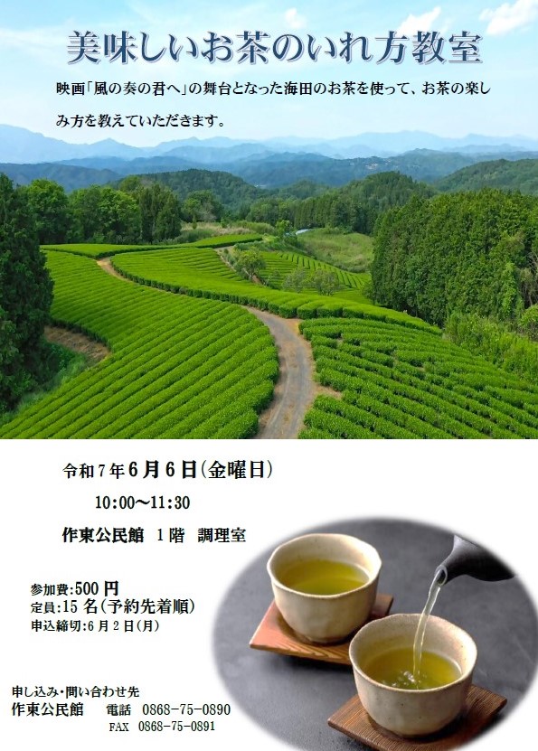 【日程】令和7年6月6日(金曜日)【時間】午前10時から午前11時30分【会場】作東公民館(美作市江...