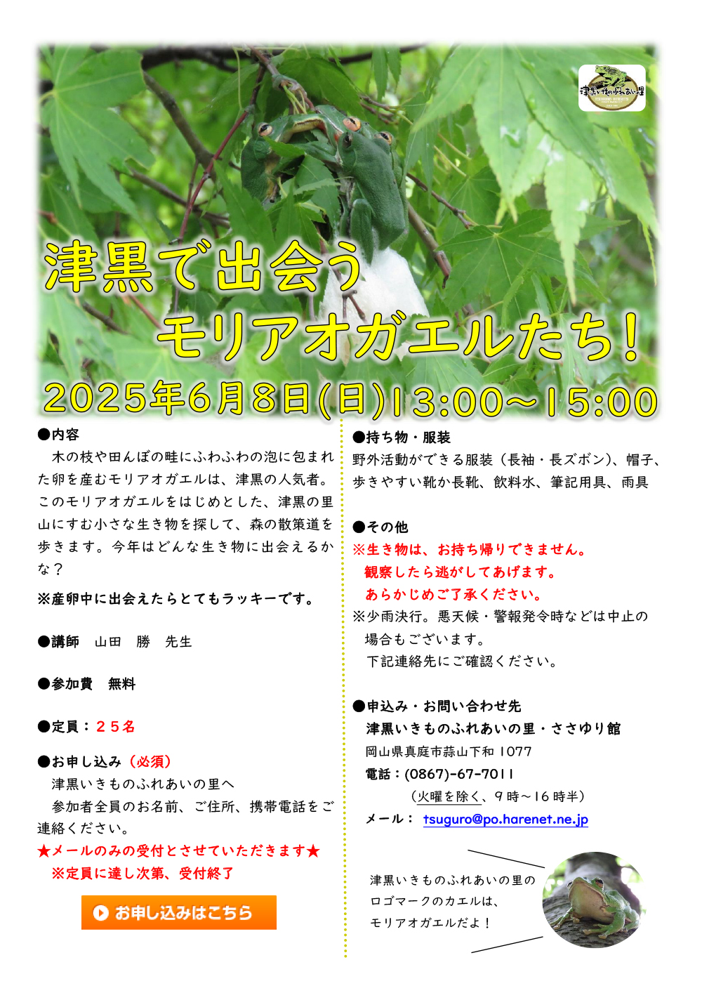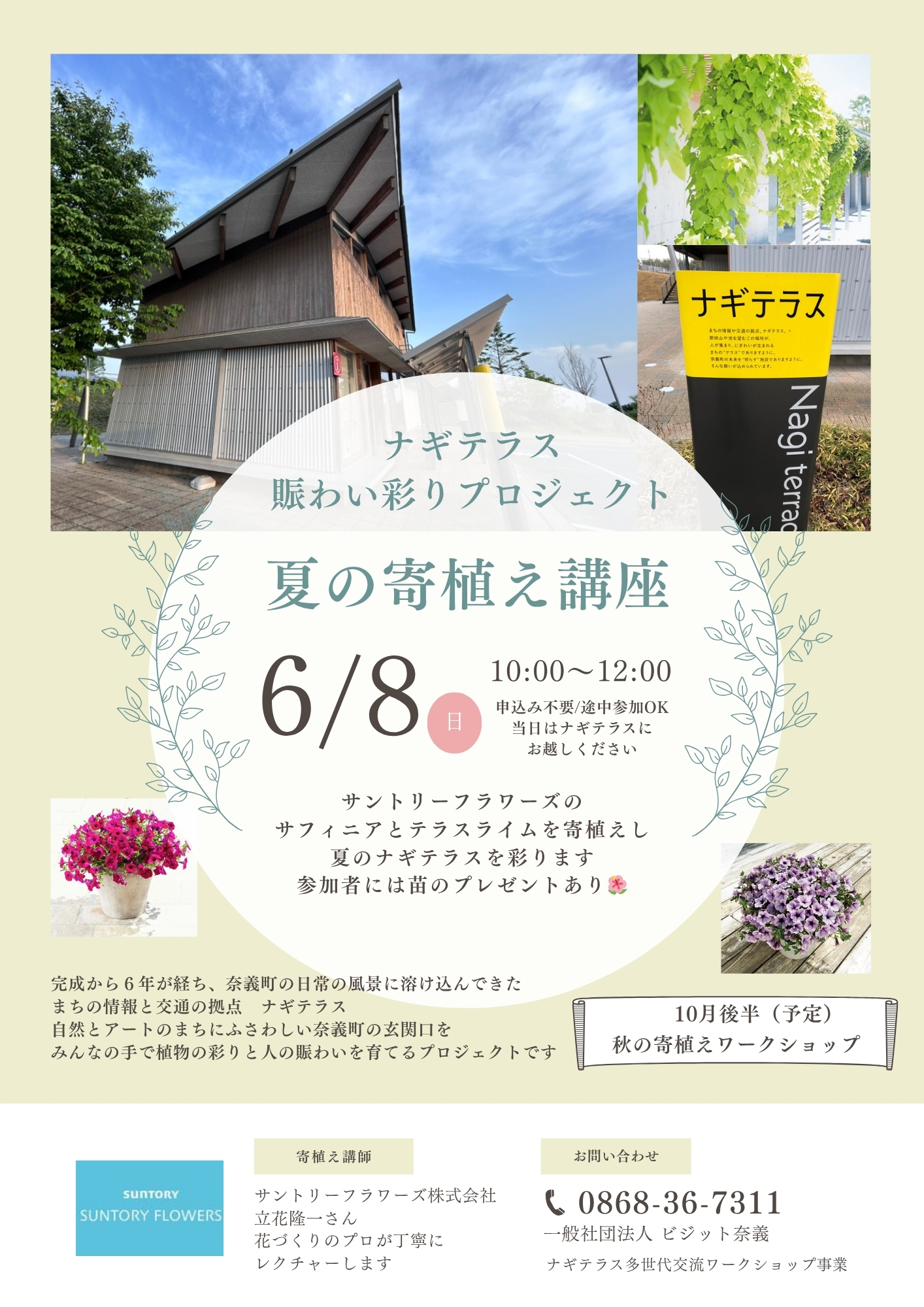 【日程】2025.06.08(日)【時間】10:00~12:00【会場】ナギテラス(奈義町観光案内所...
