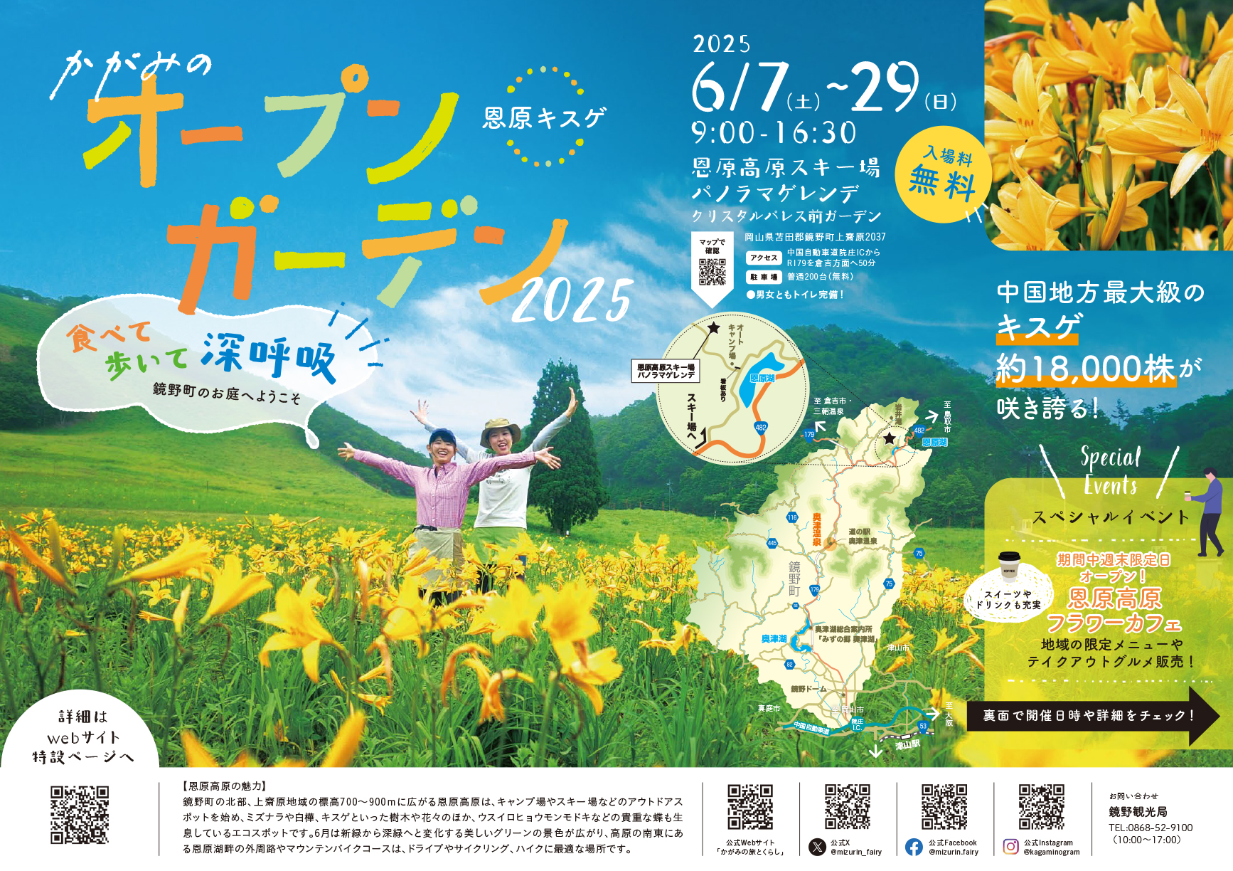【日程】2025年 6月7日(土)~ 29日(日)【時間】9:00~16:30【会場】恩原高原スキー...