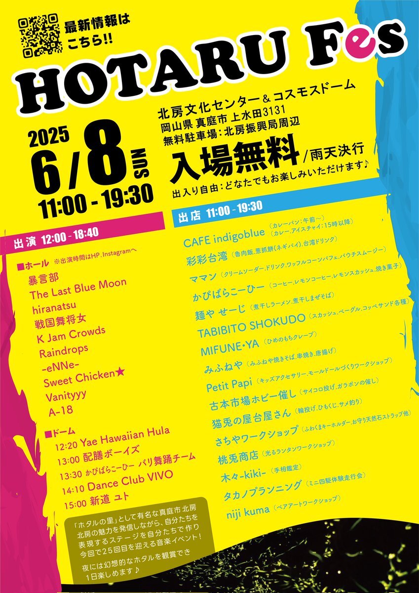 【日程】2025年6月8日(日)【時間】11:00 ~19:30【会場】北房文化センター/コスモスド...
