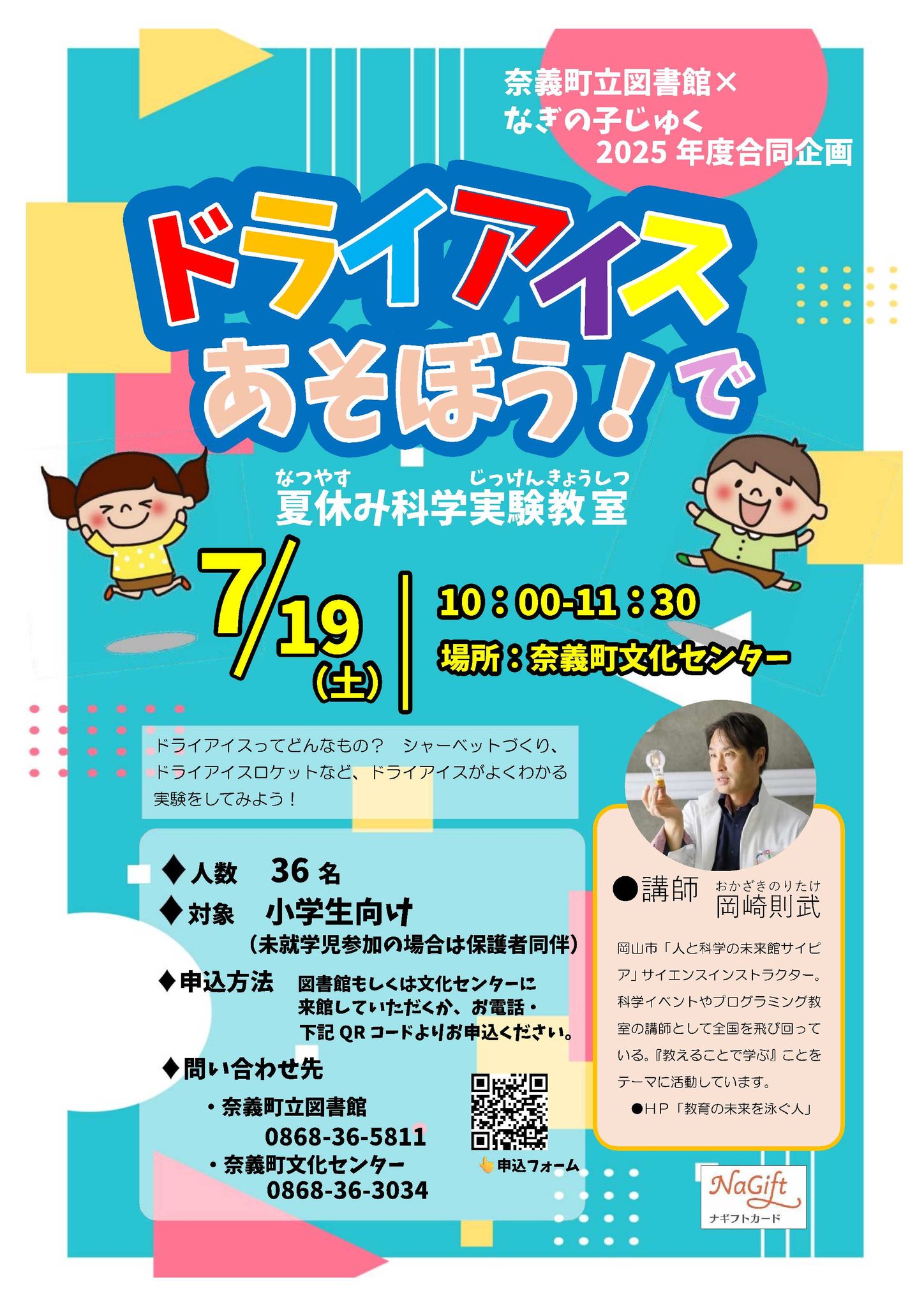 【日程】2025年7月19日(土)【時間】午前10時~11時30分【会場】奈義町文化センター 2階調...