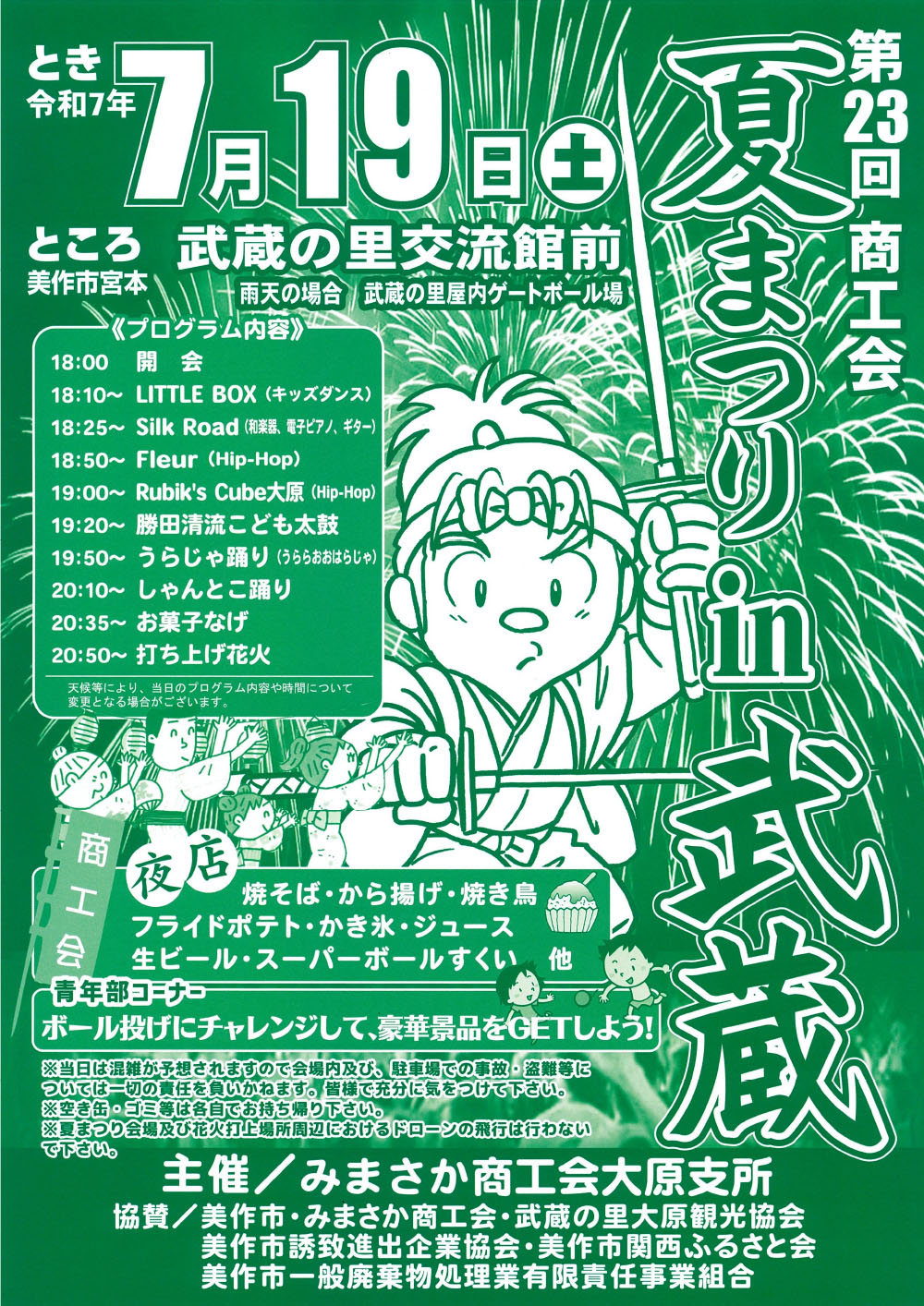 【日程】2025年7月19日(土)【時間】18:00~21:00 花火の打ち上げ:20:50~【会場...