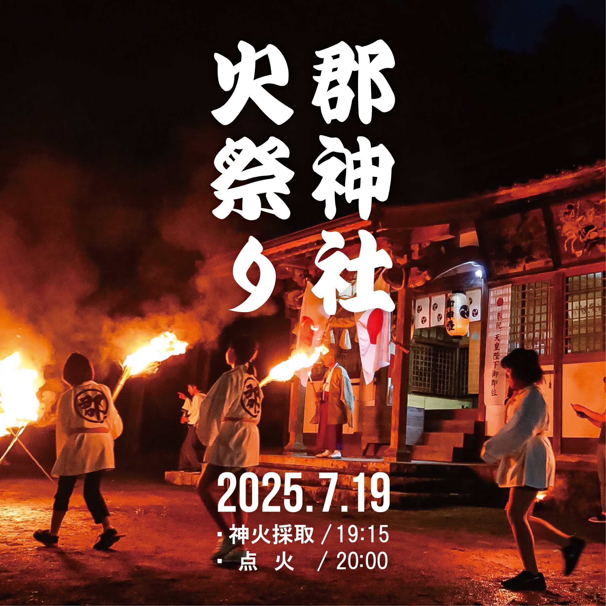 【日程】7月19日(土)【時間】・19:15 - 神火採取・20:00 - 点火【会場】郡神社(真庭...