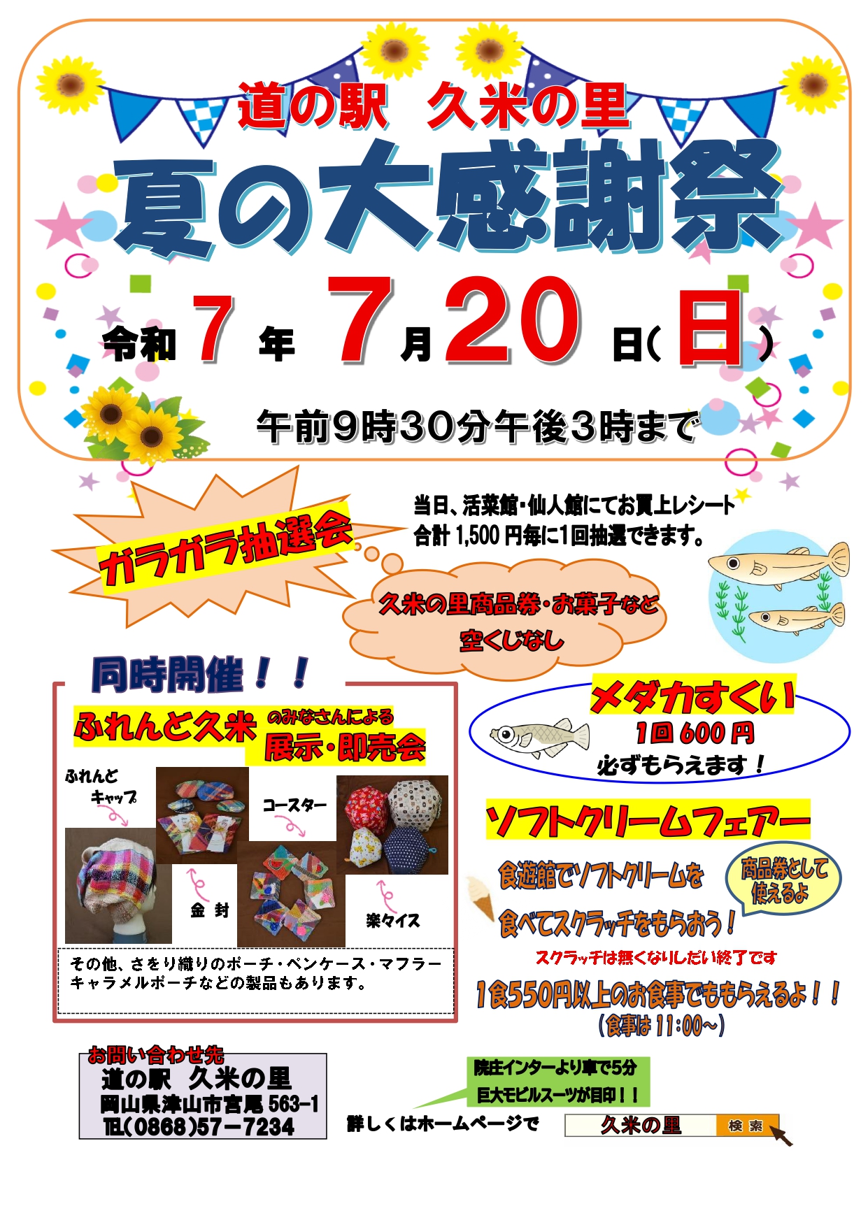 【日程】令和7年7月20日(日)【時間】午前9時30分~午後3時まで【会場】道の駅 久米の里(津山市...