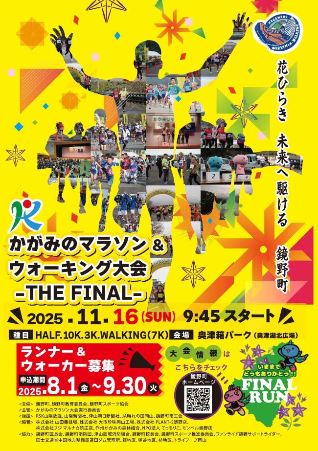 【開催日】令和7年11月16日(日曜日)【会場】奥津箱パーク(苫田ダム北舗装広場)【コース】ハーフ、...