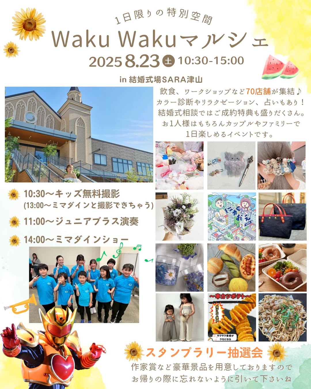 【日程】2025年8月23日(土) 雨天決行【時間】10:30〜15:30【会場】結婚式場SARA津...