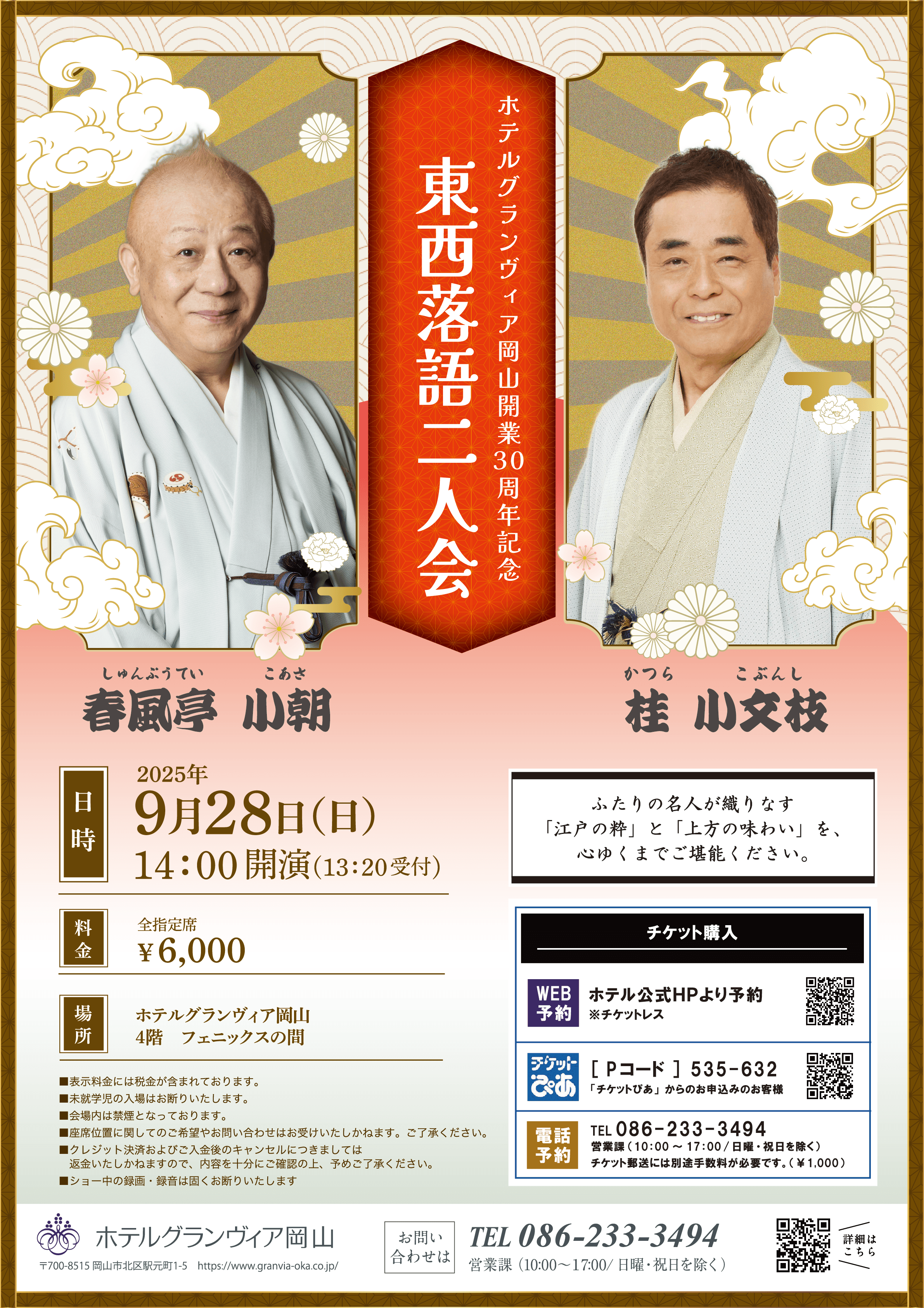【日程】2025年9月28日(日)【時間】14:00開演(13:20受付)【会場】ホテルグランヴィア...