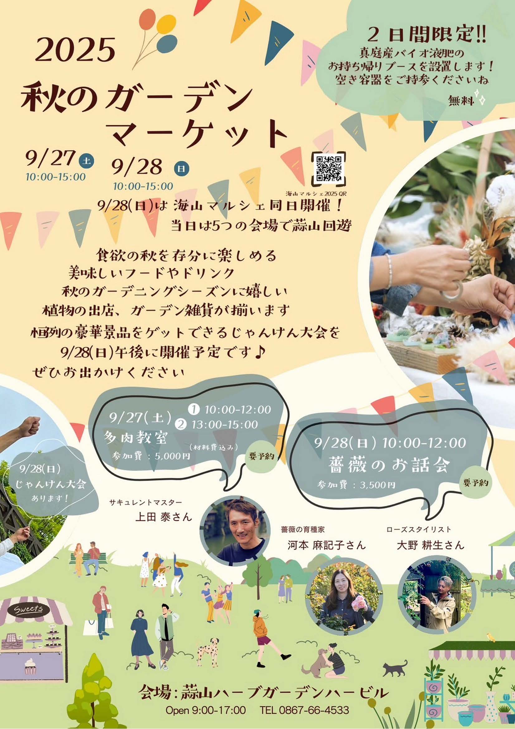 【日程】2025年9月27日(土)〜28日(日)【時間】午前9時30分~午後3時【会場】蒜山ハーブガ...