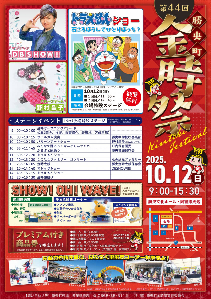 【日程】2025年10月12日(日)※雨天決行【時間】9:00~15:30【会場】勝央文化ホール、図...