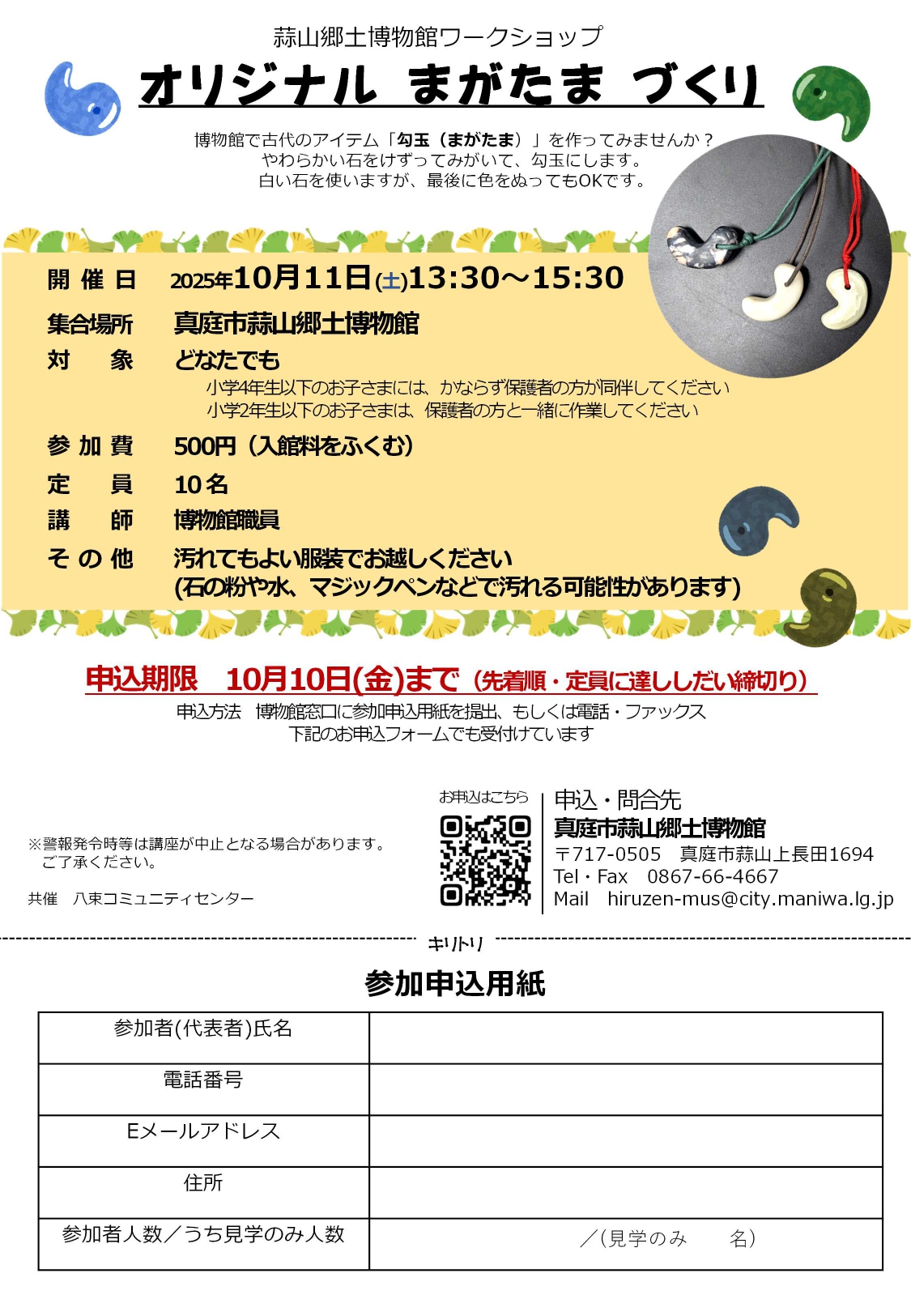 【日程】2025年10月11日(土)【時間】13:30~15:30【会場】真庭市蒜山郷土博物館(真庭...