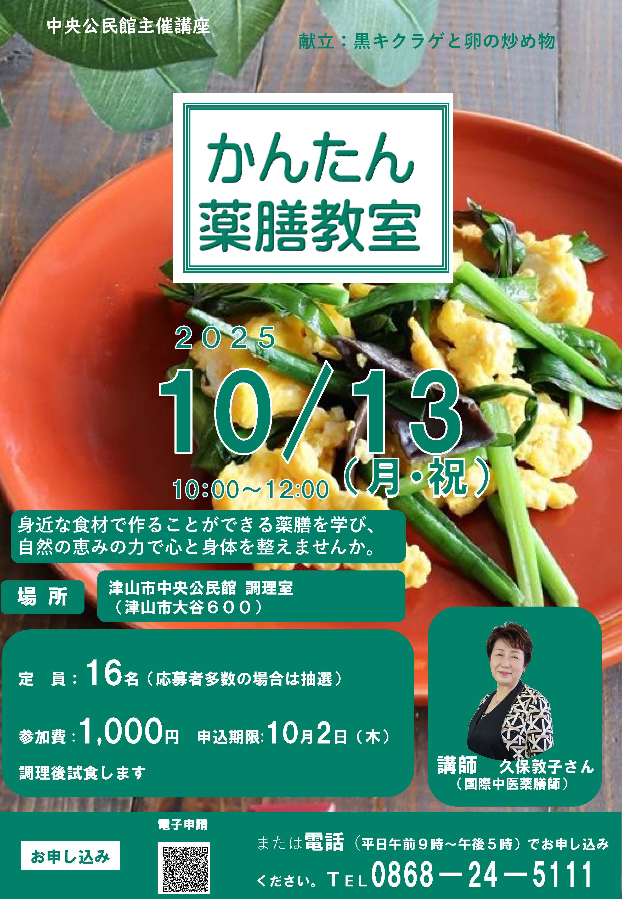 【日程】2025年10月13日(月・祝)【時間】午前10時~正午【会場】津山中央公民館(津山市大谷6...