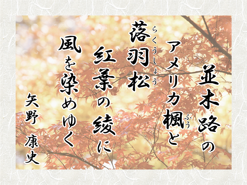 夕風の落葉舞う音(ね)に振り向かぬ 散歩帰りの亡夫(つま)かと思い山本 見佐子●そこはかとなく哀愁の...