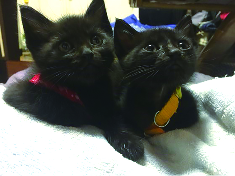 うちのなごみ系兄弟ねこ、黒胡麻と黒豆。呼ぶ時は「ごま、まめ」と略します。黄色の首輪がごま、赤の首輪が...