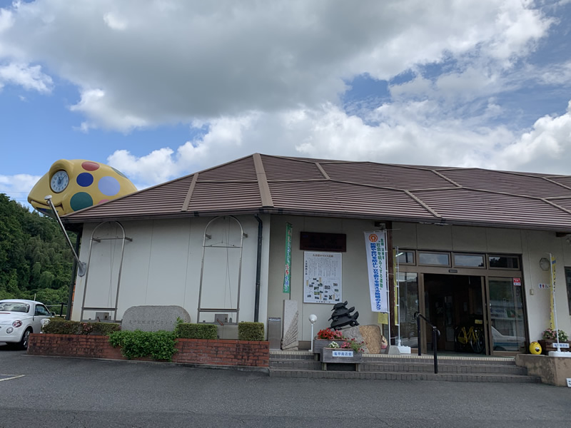 まず、駅舎がユニークなことで知られる亀甲駅。駅舎そのものが、亀をイメージして作られている。と言うより...
