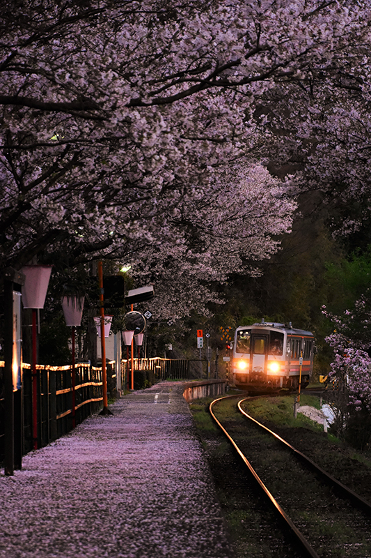 駅の周りの線路沿いに、多くの桜が植えられており、満開から散り始めの時期に是非訪れてもらいたい駅だ。桜...